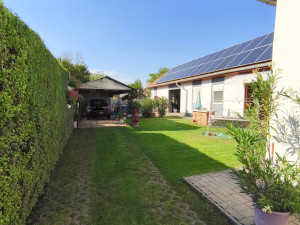 Eladásra kínálunk egy 80 m²-es, földszintes családi házat, amelyhez egy 30 m²-es különálló garzonlakás is tartozik (vilany, klíma van, víz kiállás előkészítve.). A két épületrészt egy tágas, 30 m²-es fedett terasz köti össze, amely kiváló helyszíne lehet családi, baráti összejöveteleknek. A fedett terasz kis ráfordítással beépíthető, így a 80 nm es lakáshoz még 60 nm bővíthető lakótér létesülhet.